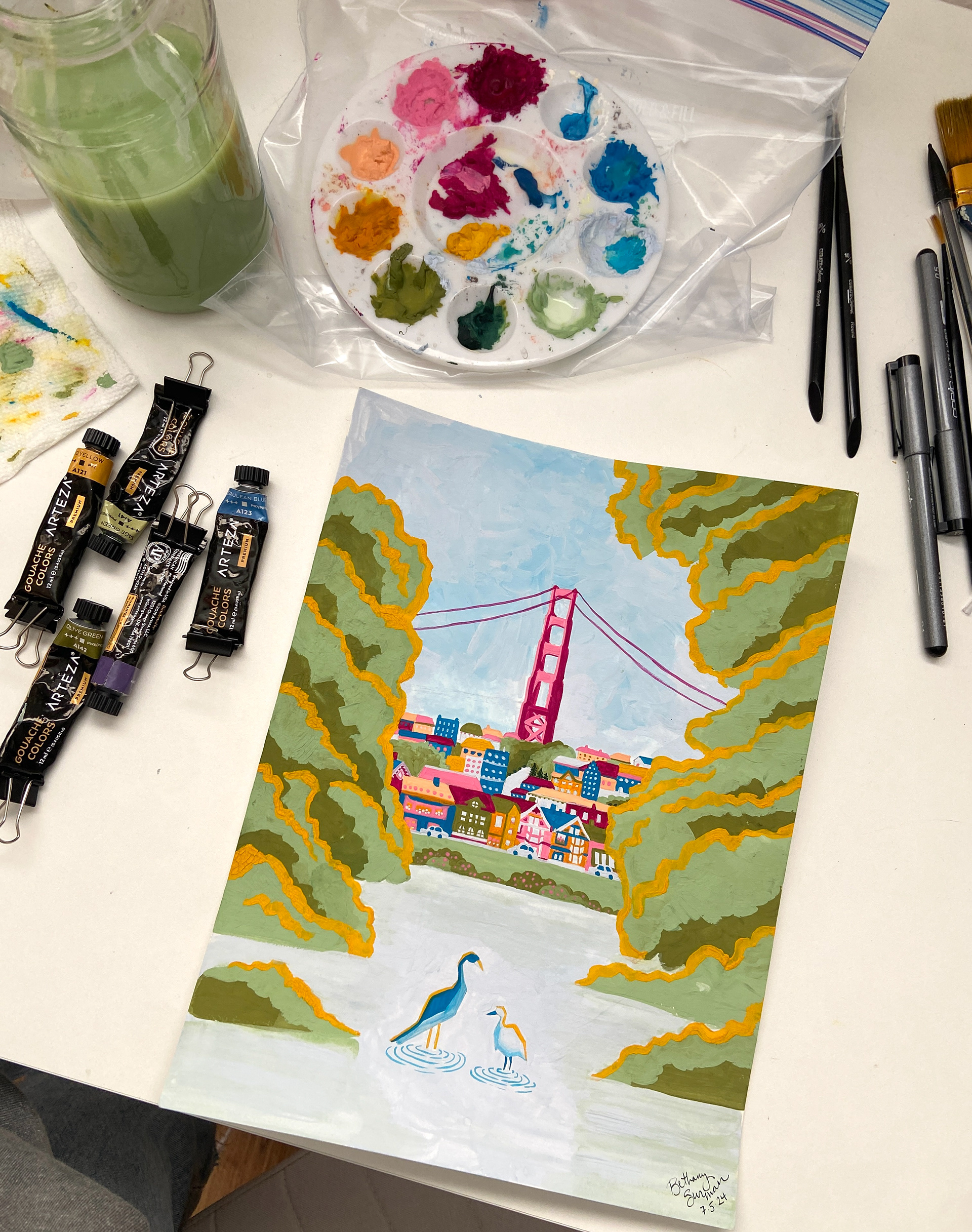 Took a photo on my honeymoon in June of 2024, painted it with Gouache and then repainted it digitally on Procreate. Enjoyed playing with the two mediums back-to-back and reliving such a special memory! If you look closely at the real photo you can see the two tiny birds.